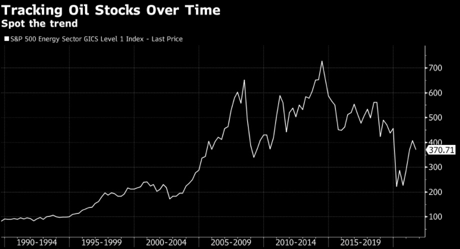 简而言之,Jampel的观点是,没有什么能拯救石油行业。他表示,随着更好的技术出现,对石油和天然气的长期需求减弱,远离化石燃料的步伐将加快。股市已开始反映出这种悲观前景,石油类股的交易价格约为5年高点的一半。