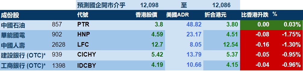 大型蓝筹涨跌不一,汇丰控股收报40.11港元,较港收市涨1.04%;腾讯控股收报453.67港元,较港收市跌1.42%。