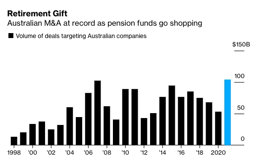 智通财经APP获悉,澳大利亚养老金管理人员正在将澳大利亚今年的公司并购总额推至历史新高。