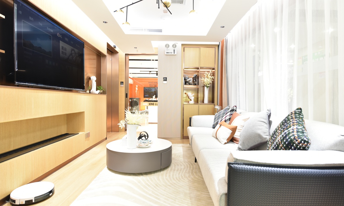 回家时,客厅的窗帘、灯光、空调自动打开,凉爽、明亮的客厅快人一步,欢迎你回家。