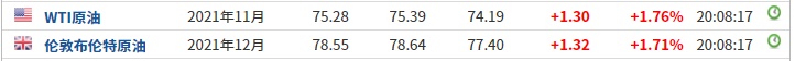 截至发稿,WTI原油涨1.76%,报75.28美元/桶。布伦特原油涨1.71%,报78.55美元/桶。