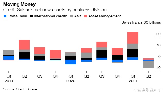 在投资Greensill的100亿美元中,有30亿美元可能永远无法收回。自2019年初以来,瑞信的财富和资产管理部门每个季度都有健康的资金净流入;但今年第二季度,该部门流出了约60亿瑞士法郎(65亿美元)的资金。