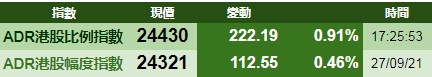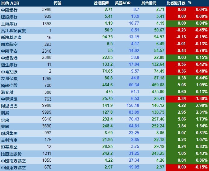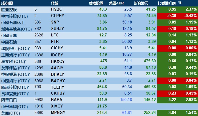 智通财经APP获悉,周一美股三大指数涨跌不一,港股ADR指数上涨,按比例计算,收报24430点,涨222.19点或0.91%。