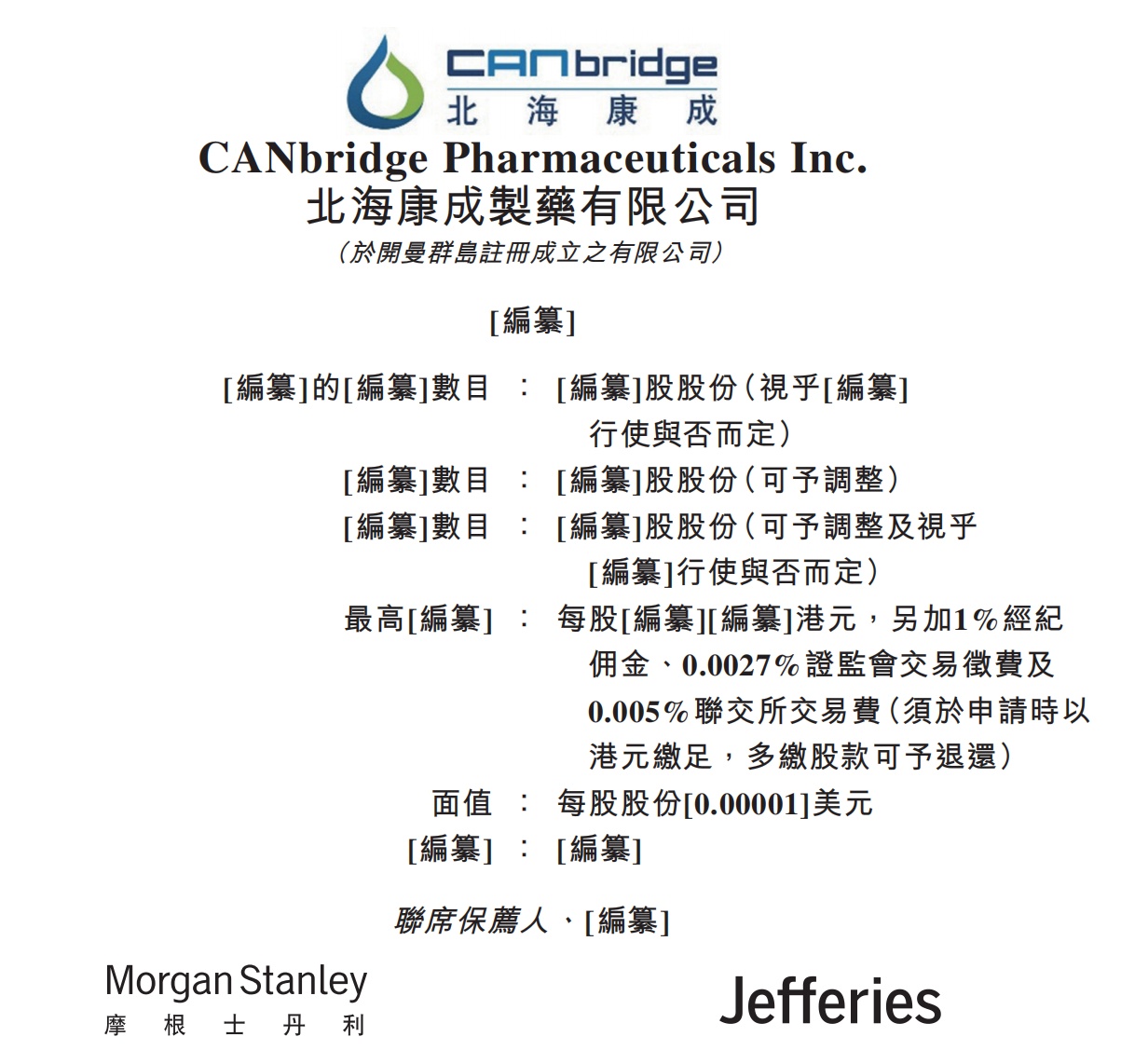 Inc.)不久前向港交所递交了上市申请,准备在香港上市。大摩、Jefferies为北海康成联席保荐人,投资者包括WuXi PharmaTech