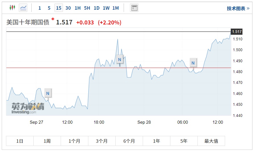而美国10年期国债收益率上升2.8个基点至1.52%,为6月28日以来的最高水平。