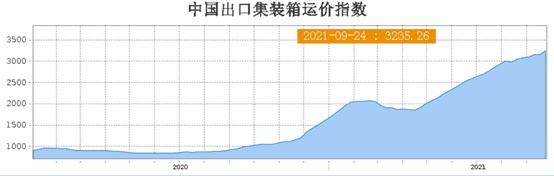 智通财经APP了解到,集运旺季来临终端需求旺盛,同时港口压港、拥堵现象持续,运输业供需不匹配的结果是运费的暴涨,集运运价指数CCFI/SCFI持续上行。上海航运交易所公布的数据显示,自今年以来,全球海运价格大幅上升,截至9月24日,中国出口集装箱运价指数高达3235.26,较2020年初上涨幅度超过3倍,指数年初至今亦有近30%的涨幅。