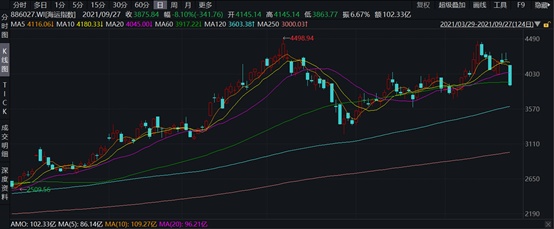 然而,在国际运费屡创新高之际,海运板块却似乎未能“守住高地”。9月27日,航运龙头中远海控早盘低开低走,A股在大量资金抛售下触及跌停,截至当日收盘,跌停板上封单超18万手,全日成交额高达75.34亿元,总市值缩水为3097亿元;中远海控H股更是暴跌14.33%。