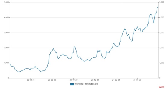 干散货运输行业运价指数波动较大,但依然呈现向上攀升的趋势,截至2021年9月24日,BDI报收4717点。根据招商证券测算,展望中期,煤炭、铁矿石、粮食等需求如果形成合力,叠加供给端持续偏紧,BDI运价指数有望达到5000-6000点的新台阶。