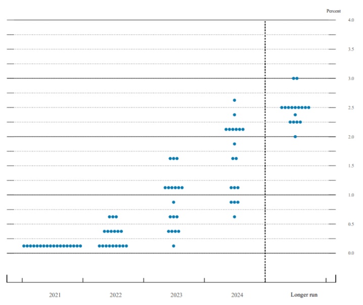 而根据上一次FOMC会议的点阵图显示,美联储预期2022年进行首次加息。