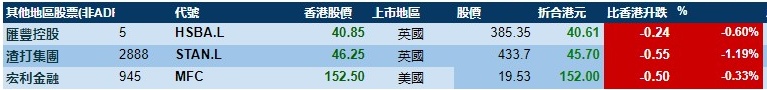 大型蓝筹齐跌,汇丰控股收报40.41港元,较港收市跌1.08%;腾讯控股收报459.2港元,较港收市跌2.26%。