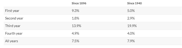 正如许多金融学者之前指出的那样,历史数据与这一理论只是大致一致。尽管第二年是周期中最糟糕的一年,但金融学者们表示,其平均回报率与其他三年的平均回报率之间的差异从统计学角度来看,在95%置信水平上并不显著。