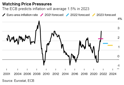 尽管当前通胀大幅飙升至高于欧洲央行的目标,但欧洲央行行长拉加德在周二表示,将其归咎于2020年以来能源价格的上涨以及供应链瓶颈带来的摩擦。她指出:“关键的挑战是确保我们不会对与中期无关的暂时性供应冲击反应过度。”
