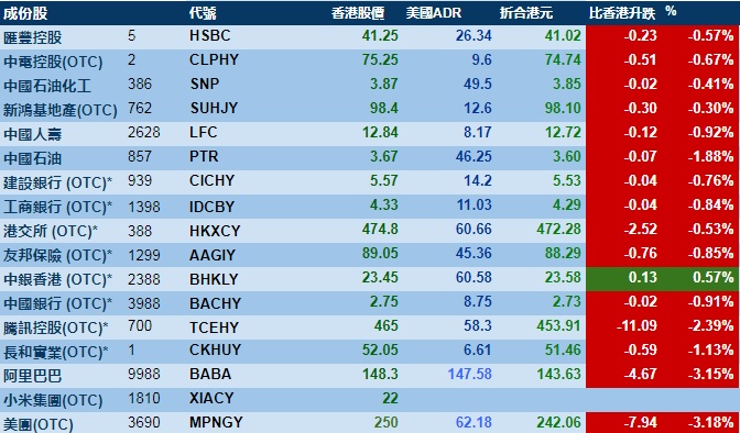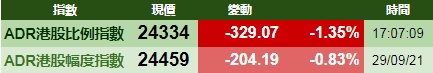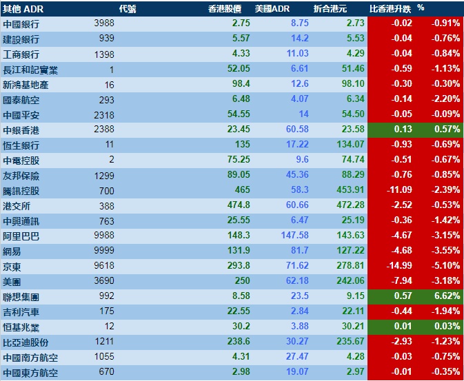 智通财经APP获悉,周三美股三大指数涨跌不一,港股ADR指数下跌,按比例计算,收报24334点,跌329.07点或1.35%。