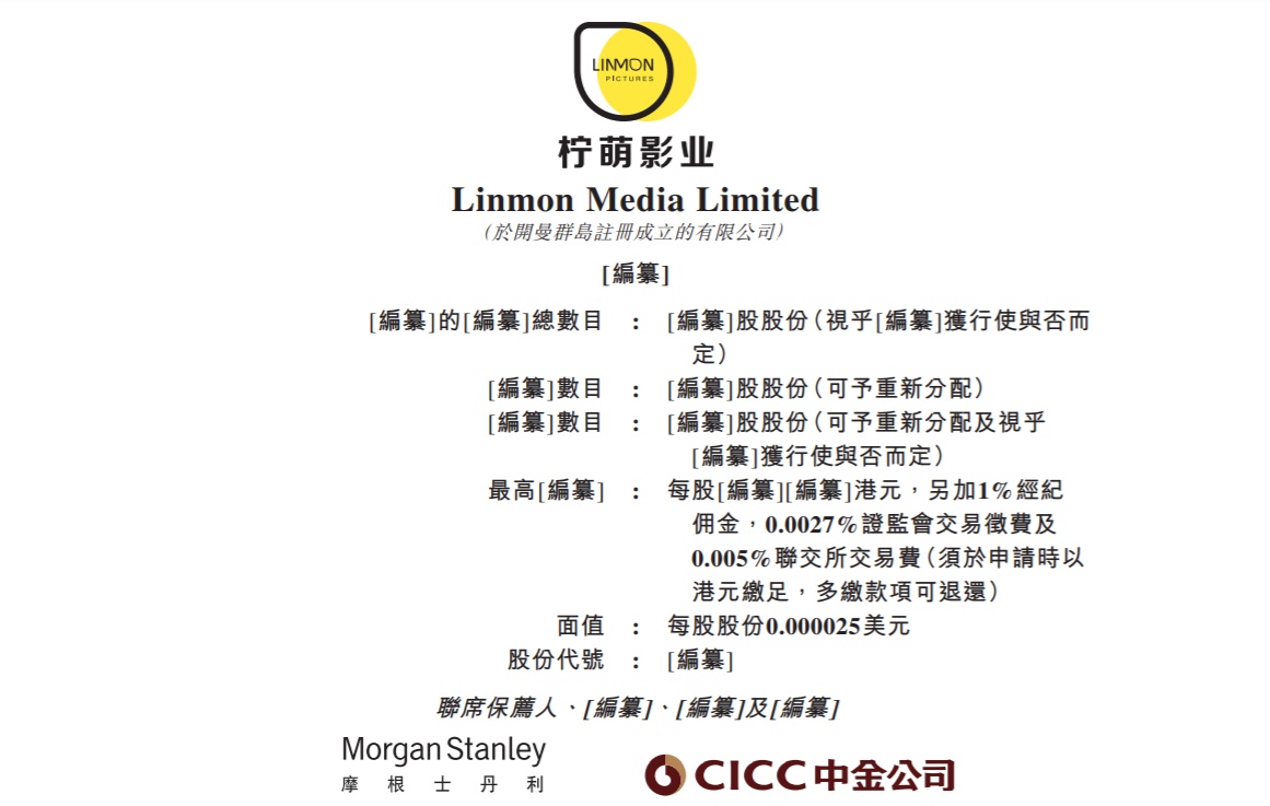 智通财经APP获悉,据港交所9月29日披露,柠萌影视传媒有限公司(Linmon Media Limited)(以下称“柠萌影业”)向港交所递交主板上市申请,摩根士丹利与中金公司为其联席保荐人。