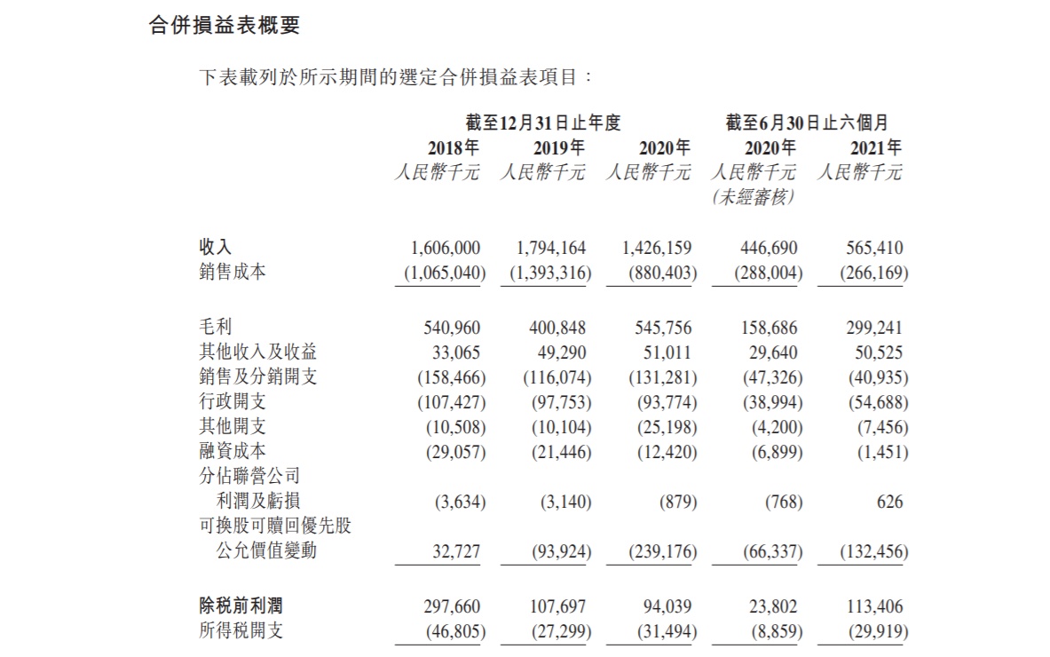 至于财务方面,于2018年,2019年,2020年及2021年上半年,柠萌影业的收入分别为人民币16.06亿元、17.94亿元、14.26亿元及5.65亿元。同期,年\期内利润分别为人民币2.51亿元、8039.8万元、6254.5万元及8348.7万元。