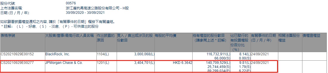 智通财经APP获悉,香港联交所最新资料显示,9月24日,小摩减持浙江沪杭甬(00576)340.4701万股,每股作价6.3642港元,总金额约为2166.82万港元。减持后最新持股数目约为1.41亿股,最新持股比例为9.81%。