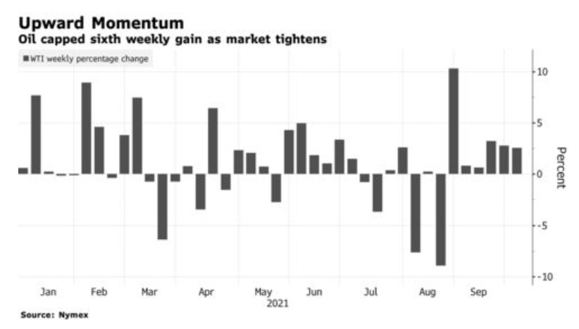 在上周五连续第六周上涨后,纽约原油期货价格接近每桶76美元。一些行业顾问和交易员表示,以沙特阿拉伯和俄罗斯为首的OPEC石油生产国可能不得不考虑在11月份将日产量提高到计划产量40万桶以上。OPEC自己的模型显示,未来两个月需求将超过供应。