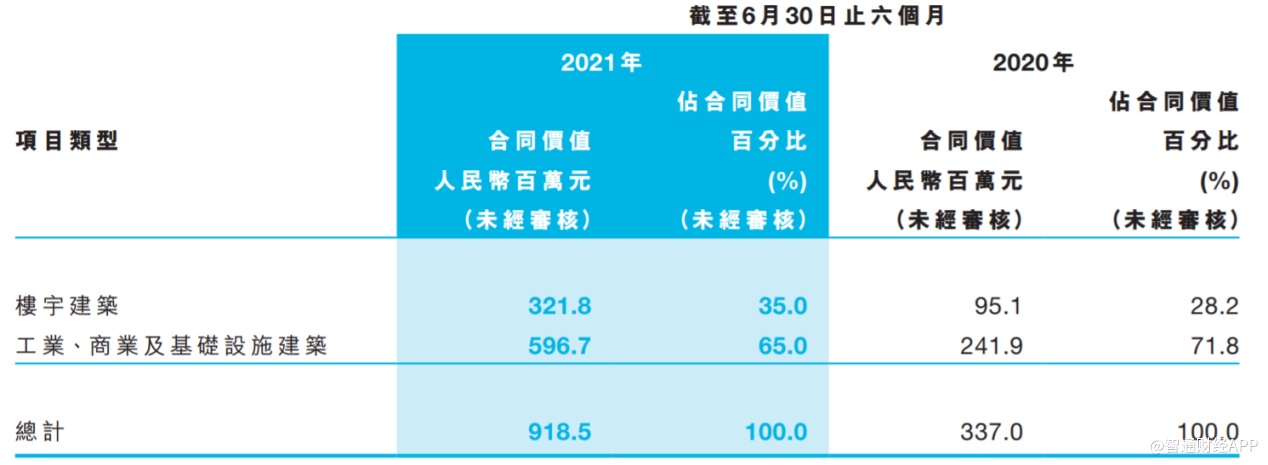 而从新签合同的项目类型来看,楼宇建筑的合同价值为3.22亿元,已恢复至2019年同期的87.68%;来自工业、商业及基础设施建筑的合同价值为5.97亿元,同比增长146.67%,较2019年上半年亦大增175.87%。