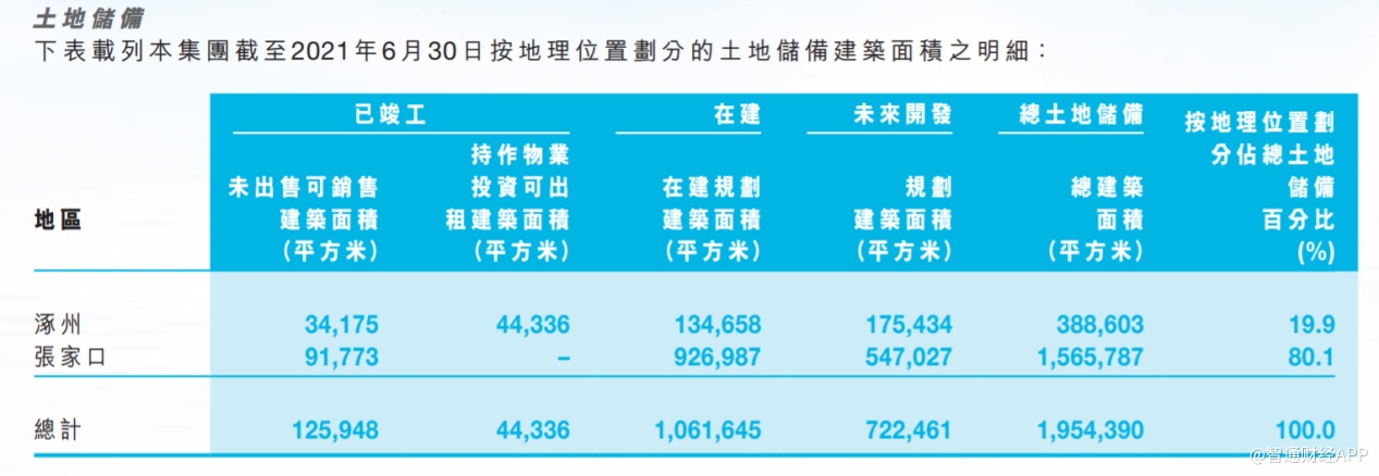 据2021年中期财报显示,截至6月30日时,公司在报告期内的土地储备为195.44万平方米,其中已竣工面积为12.59万平方米,在建面积为106.16万平方米,未来开发建筑面积为72.25万平方米。过百万平方米的在建面积,保证了公司未来三至五年的项目交付。