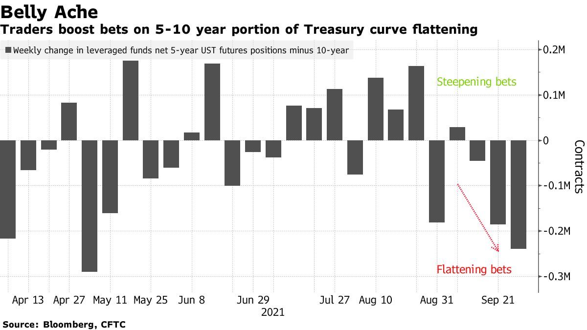 据悉,美债交易员一直对押注收益率曲线趋陡持怀疑态度,因为收益率曲线趋陡是美国经济及其金融市场进一步正常化的迹象。尽管美国经济正在从疫情中复苏,但包括经济增长放缓、通胀加剧、供应链瓶颈和美国债务上限问题等令人担忧的因素不断增加,令投资者倍感忧虑。