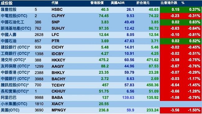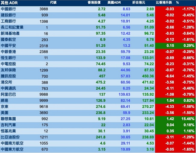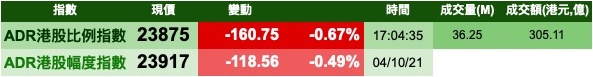 智通财经APP获悉,周一美股三大指数齐跌,港股ADR指数下跌,按比例计算,收报23875点,跌160.75点或0.67%。