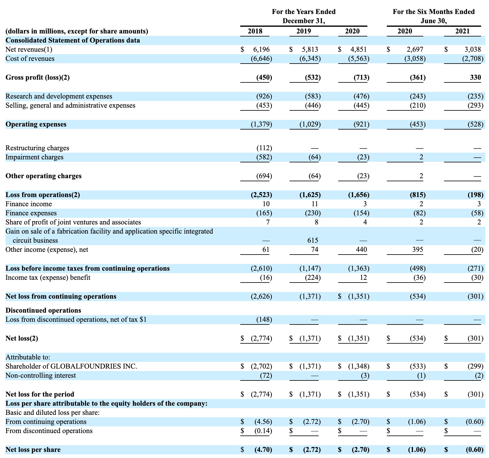 财务方面,2018至2020财政年度,格罗方德净营收分别为61.96亿美元、58.13亿美元和48.51亿美元,净亏损分别为27.74亿美元、13.71亿美元和13.51亿美元。