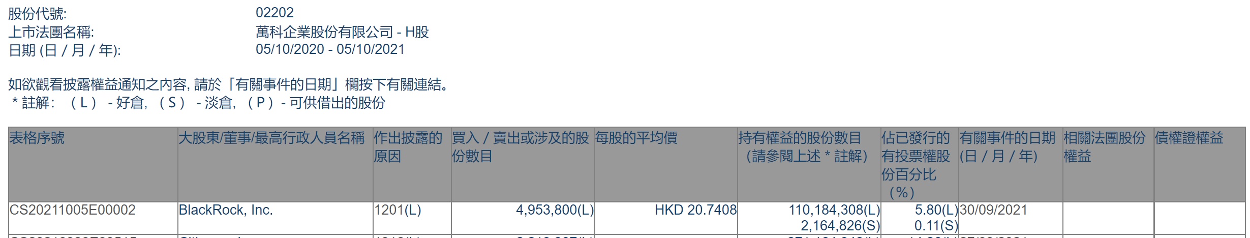 智通财经APP获悉,香港联交所最新资料显示,9月30日,贝莱德减持万科企业(02202)495.38万股,每股作价20.7408港元,总金额约为1.03亿港元。减持后最新持股数目约为1.1亿股,最新持股比例为5.8%。