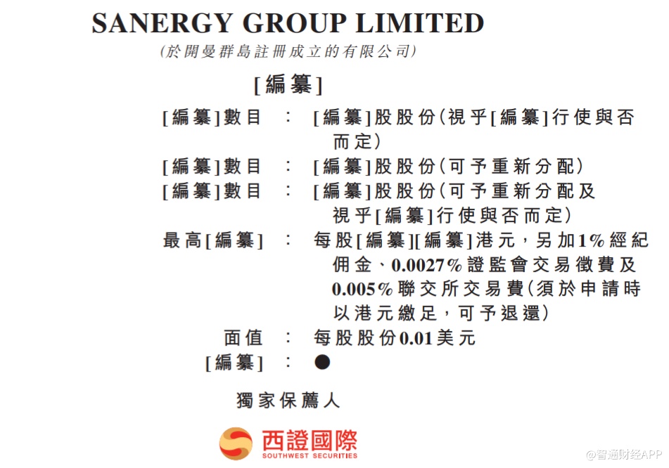 智通财经APP获悉,据港交所10月5日披露,石墨电极生产商Sanergy Group Limited向港交所主板提交上市申请,西证国际为独家保荐人。据悉,公司曾于2020年9月24日及今年3月31日向港交所主板递交过上市申请。
