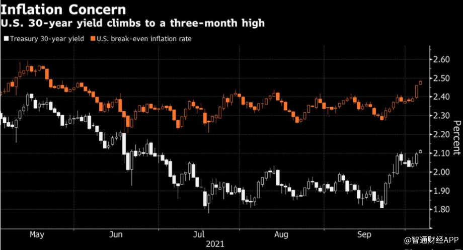 这位摩根资产管理的首席投资官正在提防一种情形假定,即从供应侧瓶颈到薪资增长的各种物价压力,会促使美联储最快在明年9月加息。这还不是他的基本情形假设,他仍预计2023年年中首次加息。但随着本周债券价格下跌推动美国国债收益率升至三个月最高水平,市场对通胀远非暂时性的担忧正在加剧。