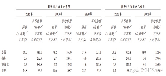 毛利率方面,2018至2020年,公司的毛利率分别为39.65%、40.76%以及40.59%,基本上维持在40%左右,而2021年上半年公司的毛利率下降至36.9%。毛利率下降的主要原因是销量最大的水泥业务售价下降所致。招股书显示,2021年上半年水泥平均销售价格从335.4/吨下降至321.4元/吨。