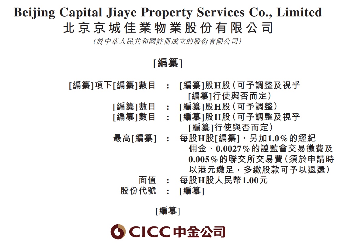 智通财经APP获悉,据港交所10月10日披露,北京京城佳业物业股份有限公司(Beijing Capital Jiaye Property Services Co., Limited)通过港交所上市聆讯,中金公司为其独家保荐人。