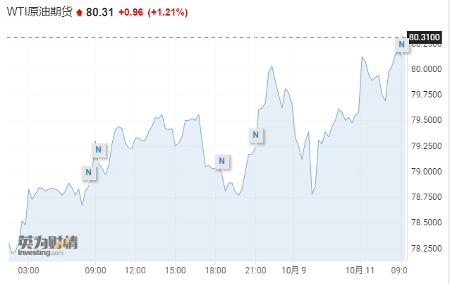 智通财经APP获悉,由于全球能源危机尚未能得到缓解,大型电力用户需求仍难以满足,美国油价自上周升至近七年来的最高水平后,站上80美元/桶。