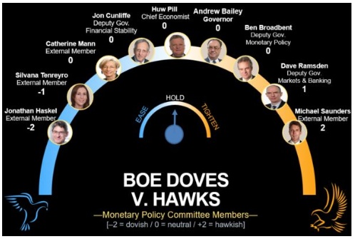 在过往历史上,英国央行决策者会试图通过鹰派言论和反对票,在选择加息前至少召开一次会议,为加息做好准备。而Saunders就是2017年和2018年推动加息的先锋。