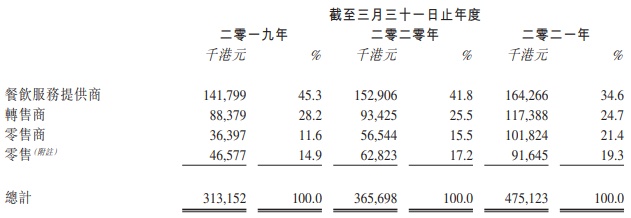 华富集团向零售商的销售也取得大幅增长,2021财年同比有80%的涨幅,达到了1.02亿港元。公司还通过餐饮服务提供商、转售商以及零售带来收入,各种销售渠道的是收入较为平均,多元化自身销售渠道的同时,也不过分依赖特定的一种。
