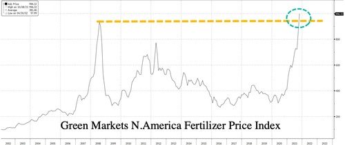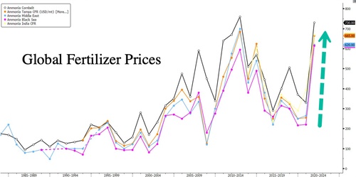 而肥料成本显然也已成为全球食品通胀背后的主要驱动因素之一,因为对于粮食作物最重要的营养元素氮、磷、钾,这三类的肥料价格都处于至少十年来的最高水平。
