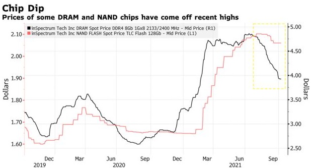 智通财经APP了解到,DRAM和NAND芯片的价格似乎已经见顶,芯片制造巨头三星电子、美光科技(MU.US)和英特尔(INTC.US)对未来12个月的预期收益在过去两个月出现波动或下降。股价较近期高点下跌了约20%或以上。