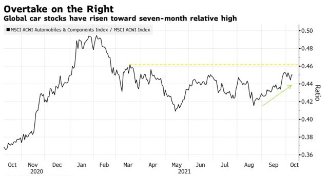 上周三,包括Adam Jonas在内的摩根士丹利分析师写道:"我们认为第三季度可能是美国汽车生产的低谷,不过供应商可能会多次下调业绩指引。但减产的消息似乎已得到充分传达,所以看到投资者在第三季度芯片价格下跌时买入相应股票,不用感到意外。”MSCI AC全球汽车及零部件指数自8月底以来一直攀升至七个月高位。