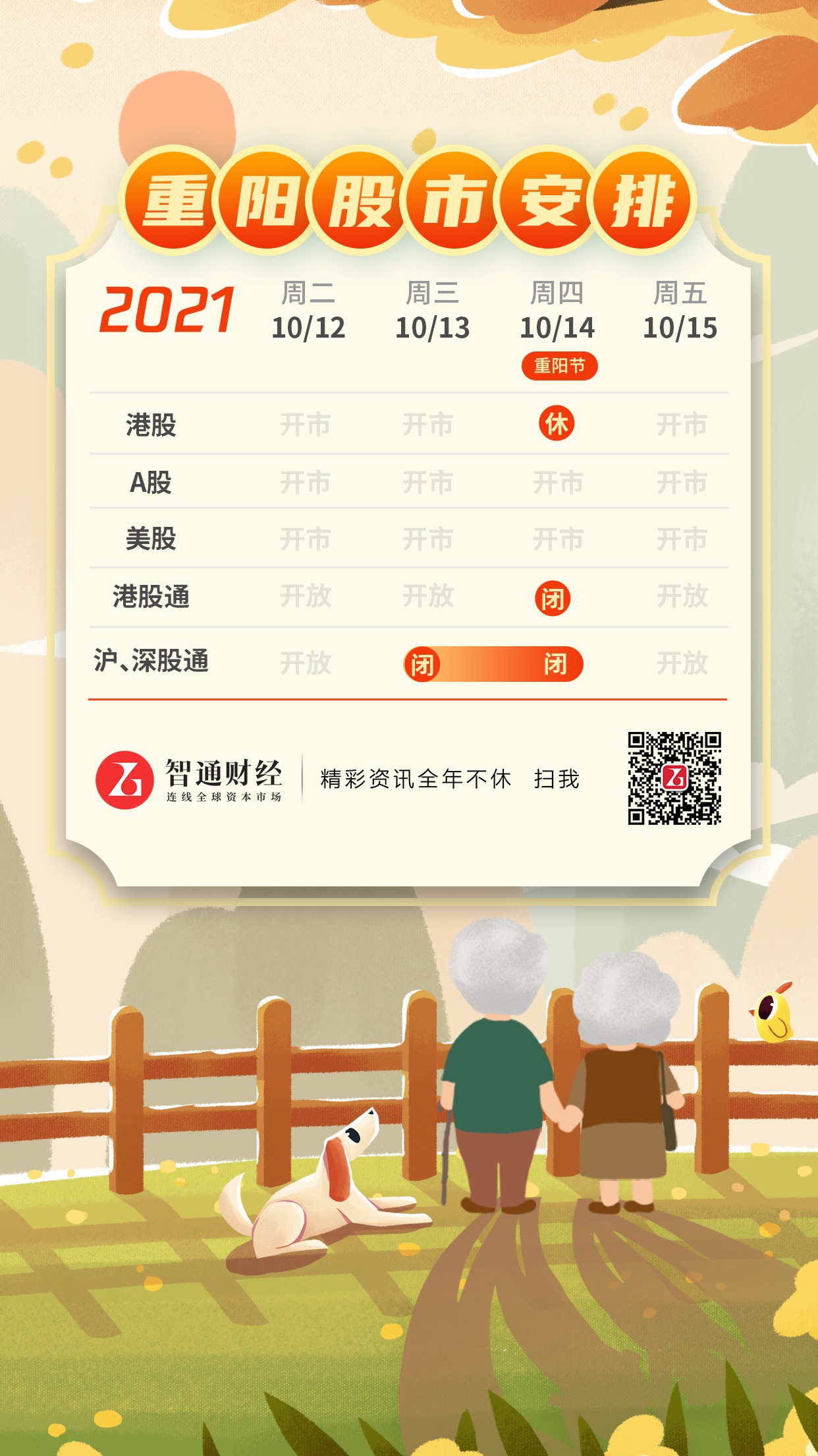 智通财经APP获悉,10月14日(本周四)为重阳节,港股于10月14日(星期四)休市,A股正常开市。