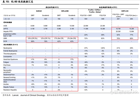 而钇[90Y]树脂微球产品虽然在OS/PFS方面与索拉菲尼基本类似,但在亚洲人群的头对头试验中ORR显著更高,副作用相比索拉菲尼明显更小。针对原发肝癌的临床研究显示,钇[90Y]树脂微球与索拉菲尼相比完全缓解率3% vs 1%,显示了临床优势;针对结直肠癌肝转移适应症的临床数据显示,钇[90Y]树脂微球联合FOLFOX标准治疗,疗效明显优于单独使用FOLFOX标准治疗;在联合PD-1单抗Opdivo治疗亚洲人群原发肝癌的II期临床也初步体现了积极的效果。在40位晚期HCC患者,中位随访时间16.4个月,ORR为31%,DCR为58.3%,钇[90Y]树脂微球放射区域内的靶病灶有81%出现消退,中位总生存期(mOS)为15.1个月,中位无进展生存期(mPFS)为4.6个月,6和12个月PFS率分别为44.2和26.1%。