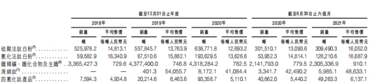 进一步细分,龙佰集团的售卖的产品又包括了钛白粉、铁精矿和铁化合物及生铁、海绵钛及四氯化钛、锆制品及其他产品。智通财经APP了解到,期内上述产品的价格虽有波动但整体处于上升区间;与此同时,各产品的销量亦有不同程度的提升。