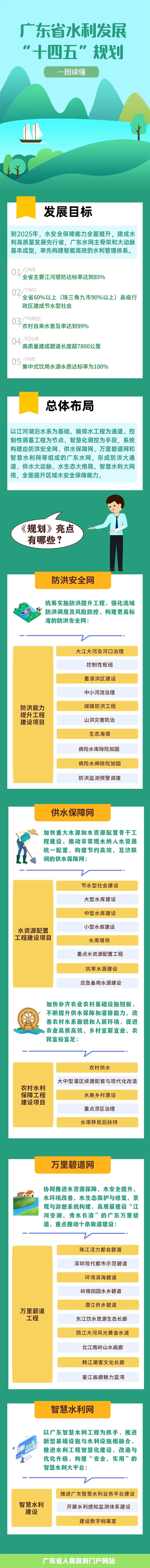 智通财经APP获悉,10月11日,广东省人民政府办公厅印发《广东省水利发展“十四五”规划》。《规划》提到,到2025年,水安全保障能力全面提升,建成水利高质量发展先行省,广东水网主骨架和大动脉基本成形,并率先构建智能高效的水利管理体系。主要发展目标:1、全省主要江河堤防达标率达到85%;2、全省60%以上(珠三角九市90%以上)县级行政区建成节水型社会;3、农村自来水普及率达99%;4、高质量建成碧道长度超7800公里;5、集中式饮用水水源水质达标率为100%。
