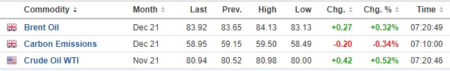 截至发稿,WTI原油涨0.52%,报80.94美元/桶。布伦特原油涨0.32%,报83.92美元/桶。