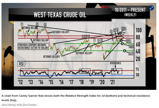 Cramer说,石油正在接近后水力压裂时代出现的技术障碍,阻力上限在每桶84美元左右。