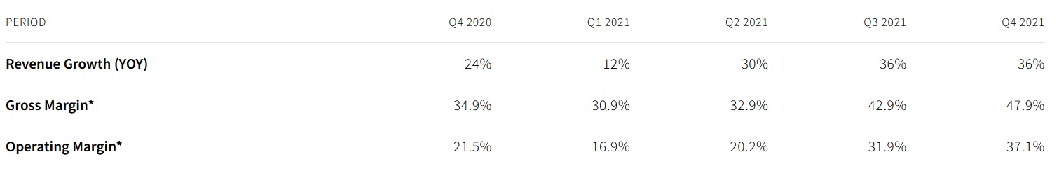 该公司第一季度的业绩指引表明放缓已经开始:其预计一季度营收将同比增长33%,较上一财年第四季度有所放缓,同时这一指引也低于分析师预期的47%。此外,该公司还预计,非GAAP毛利率将继续下降90个基点至47%(但仍较上年同期有所增长),非GAAP利润将增长约169%,低于分析师预期的218%。