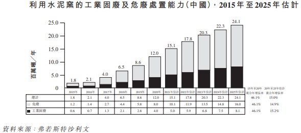 开头提到海螺环保是我国最大的水泥窑废物处置服务供应商,该市场也有较好的未来发展前景。处置能力由2015年的120万吨增长至2020年的800万吨,复合年增长率达到46.1%,预计2025年为1600万吨,2020至2025年的复合年增长率为14.9%。