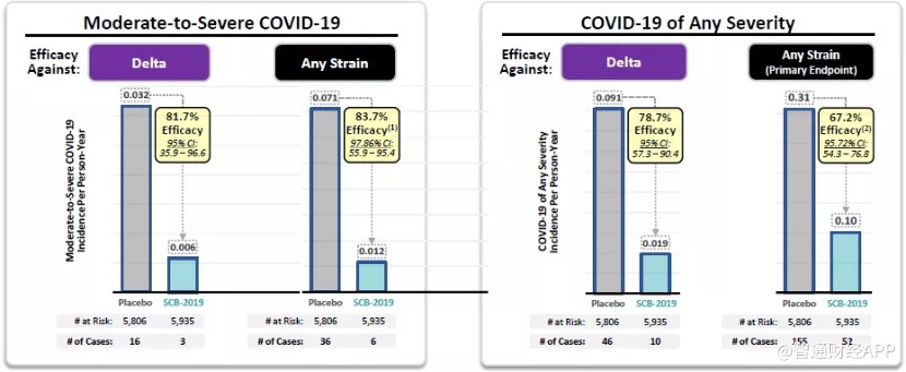 而针对在全球肆虐的德尔塔变种,SCB-2019(CpG 1018加铝佐剂)显示具有78.7%的有效性以及良好的安全性。