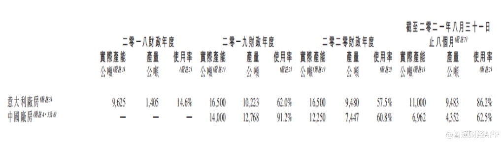 Sanergy招股书显示,公司在意大利及中国设有生产设施,实际年产能分别为1.65万吨及1.4万吨。截至2021年8月31日,意大利厂房和中国厂房的使用率分别达到86.2%和62.5%。