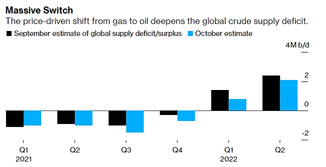 天然气危机并不完全是对石油消费的正面影响。由于供应链问题和能源成本上升导致GDP前景疲弱,IEA对石油需求增加的预估将受到抑制。