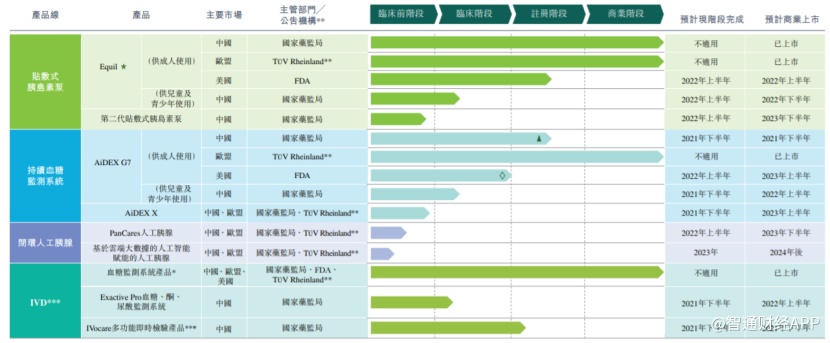 从整体产品覆盖面上看,过去十年里,微泰医疗开发了一个强大且全面的产品组合,涵盖贴敷式胰岛素泵及持续血糖监测系统(为闭环人工胰腺提供基础)IVD设备(例如血糖监测系统及即时检验设备)等多个产品线。