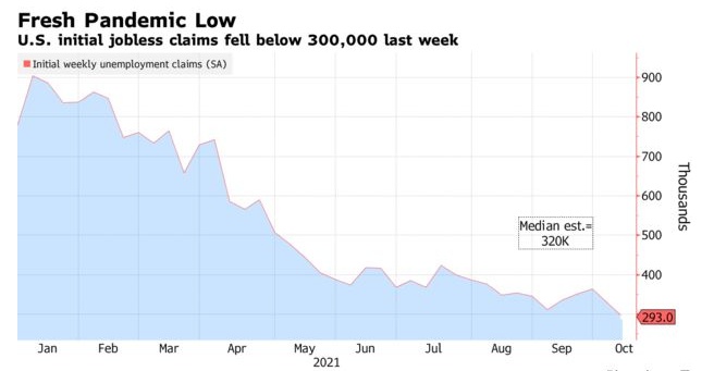 智通财经APP获悉, 10月14日,美国劳工部公布,美国截至10月9日当周初请失业金人数为29.3万人,前值32.6万人,预期32万人。美国截至10月2日当周续请失业金人数为259.3万人,前值271.4万人,预期267万人。